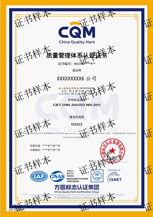 質(zhì)量管理體系認證業(yè)務(wù)范圍